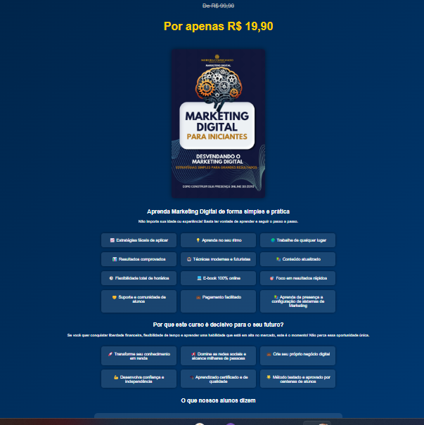 Ver paginaCursinho de marketing digital focado para iniciantes do zero ao avançado.